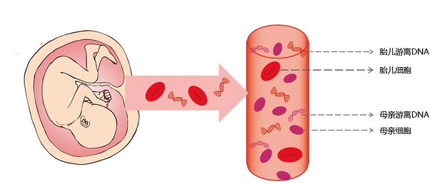 胎兒遺傳物質會通過胎盤進入母體血液,目前採用非侵入性手段獲取胎兒遺傳物質的來源有兩種:母體外周血中胎兒游離DNA(cell-free fetal DNA, cffDNA)以及母體血液中游離的胎兒細胞。